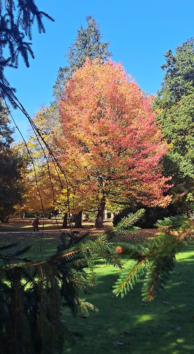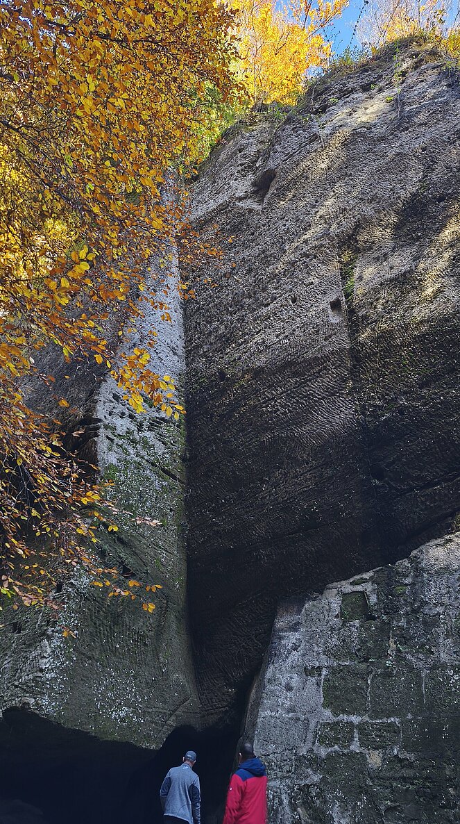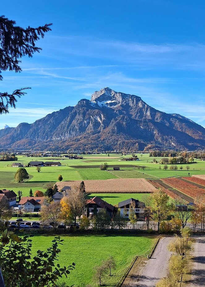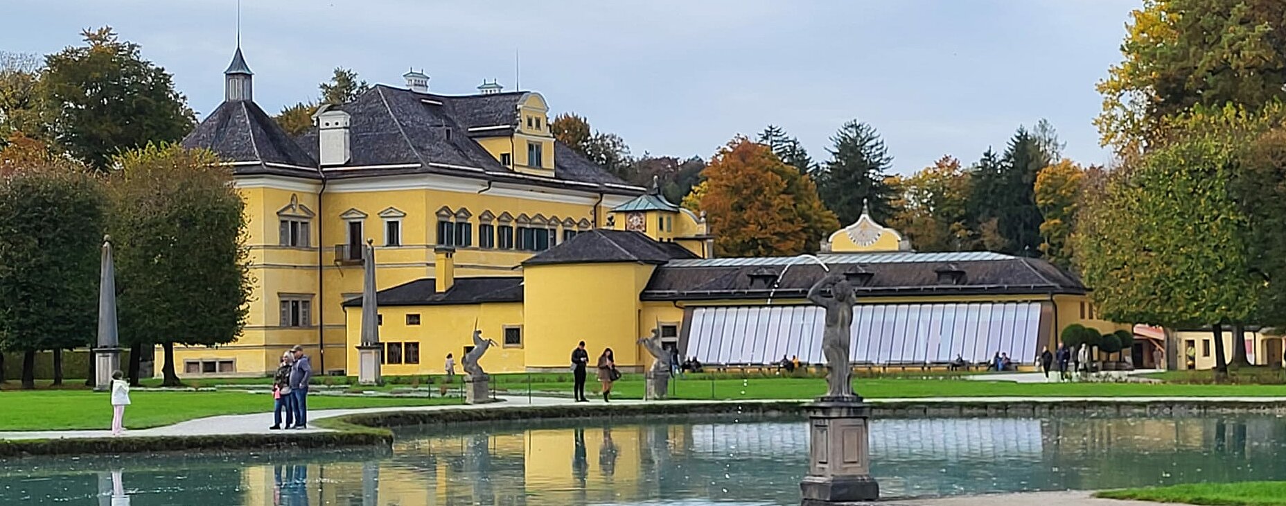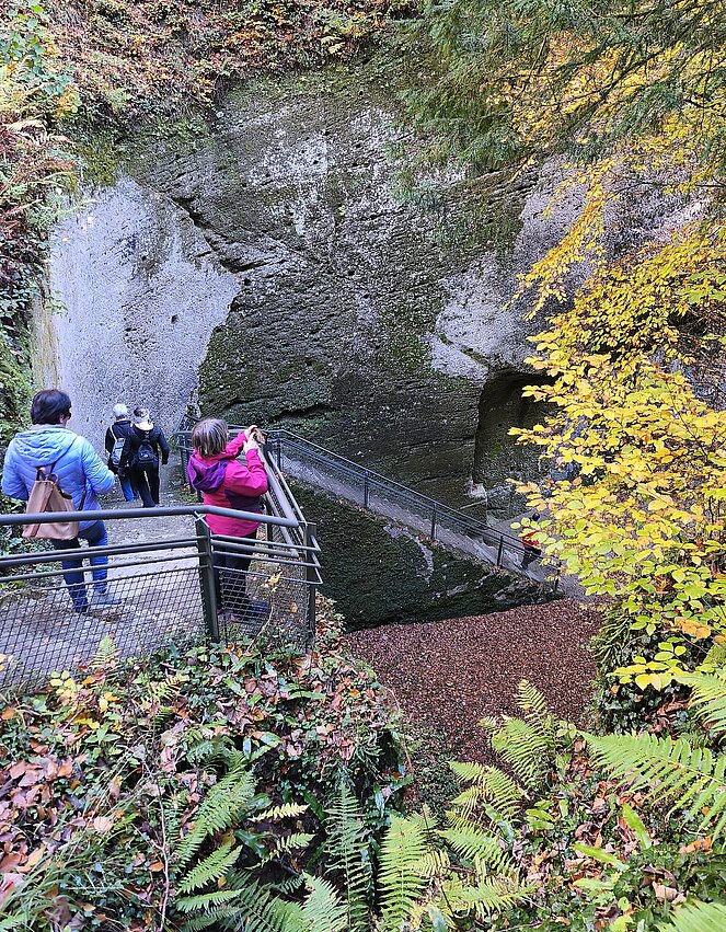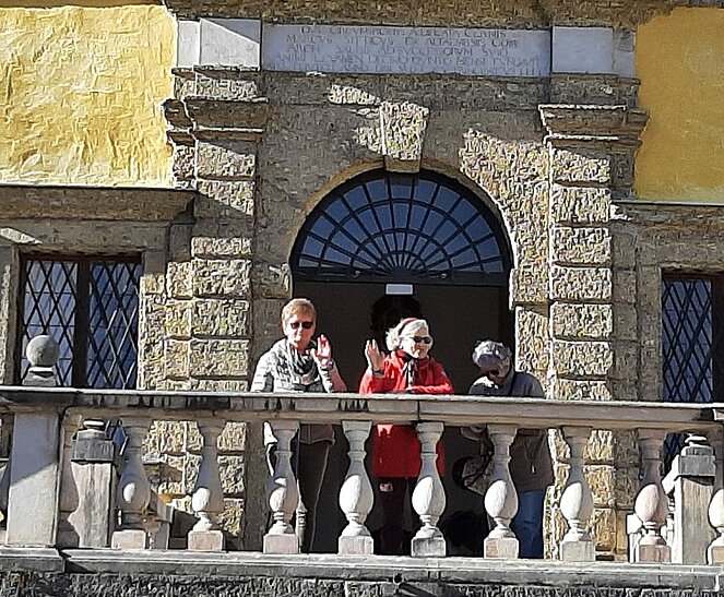 6 Wanderer genossen die herbstliche Parkanlage und der Rest begab sich auf den Hellbrunnerberg. Oben angekommen legten sie eine kleine Pause ein und genossen den tollen Ausblick auf die Umgebung. Weiter ging's zum Steintheater, mit seiner beeindruckenden Naturkulisse, die einst für barocke Aufführungen genutzt wurde. Nach 1,5 Stunden trafen sich beide Gruppen wieder im Park.