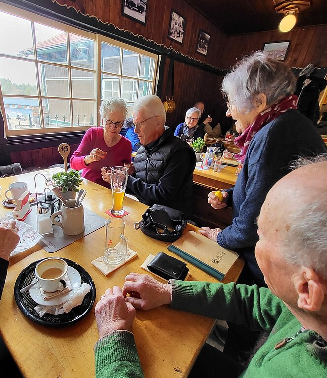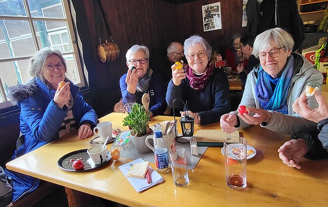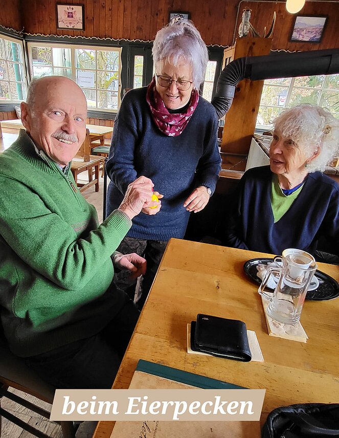 Nach einer Erkundungsrunde durch das Gelände kehrten wir im „Salettl“ ein. Mittagessen und Aufwärmen war angesagt. Zum Schluss stand noch Eierpecken in einer gut gelaunten Runde am Programm.