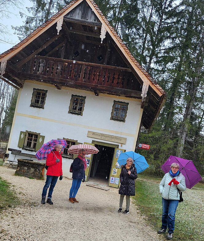 16 wetterfeste Wanderer machten sich auf eine Zeitreise durch die ländliche Geschichte von Salzburg auf, die zeigt wie über Jahrhunderte gebaut, gewohnt, gearbeitet und gelebt wurde. Über 100 historische Originalbauten aus sechs Jahrhunderten wurden aus allen Teilen von Salzburg detailgetreu wieder aufgebaut und eingerichtet. Aus unserer Heimatgemeinde Puch ist das alte Schusterhaus vom Prähauser zu sehen. Auch mit der Museumsbahn fuhren wir vom Tennengau in den Pongau.