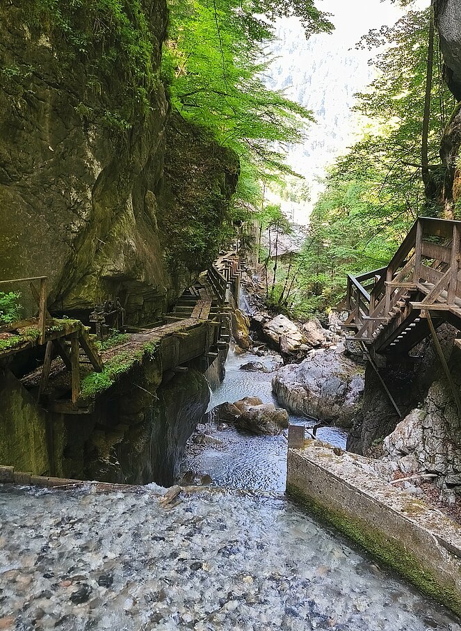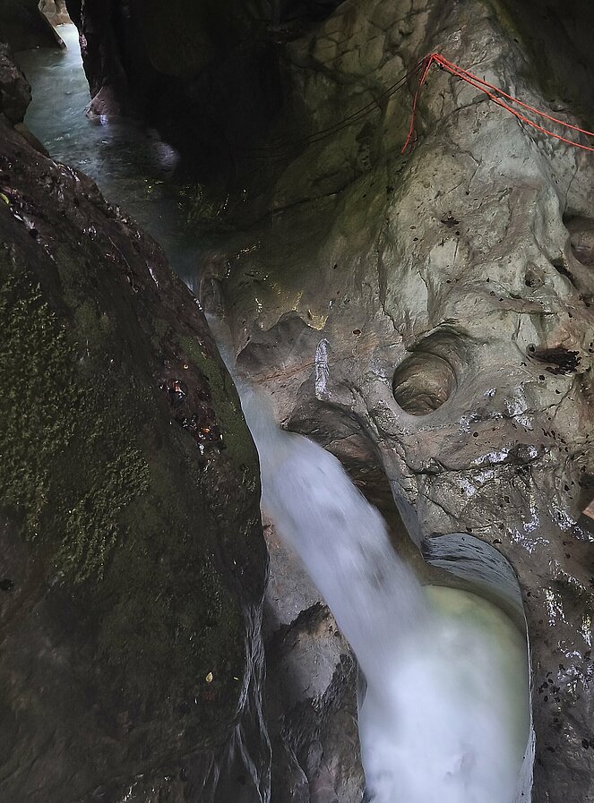 Auf bestens ausgebauten Stegen durchwanderten wir die vor ca. 12.000 Jahren entstandene Klamm in ca. 1 1/2 Stunden. Vorbei an zischenden Wasserfällen, wild sprudelndem Wasser, engen Felswänden die kaum Sonnenlicht hindurch lassen. Diese Gegebenheit und die hohe Luftfeuchtigkeit haben in der Klamm eine besondere Vegetation gedeihen lassen, die an einen dunkelgrünen Dschungel erinnert.