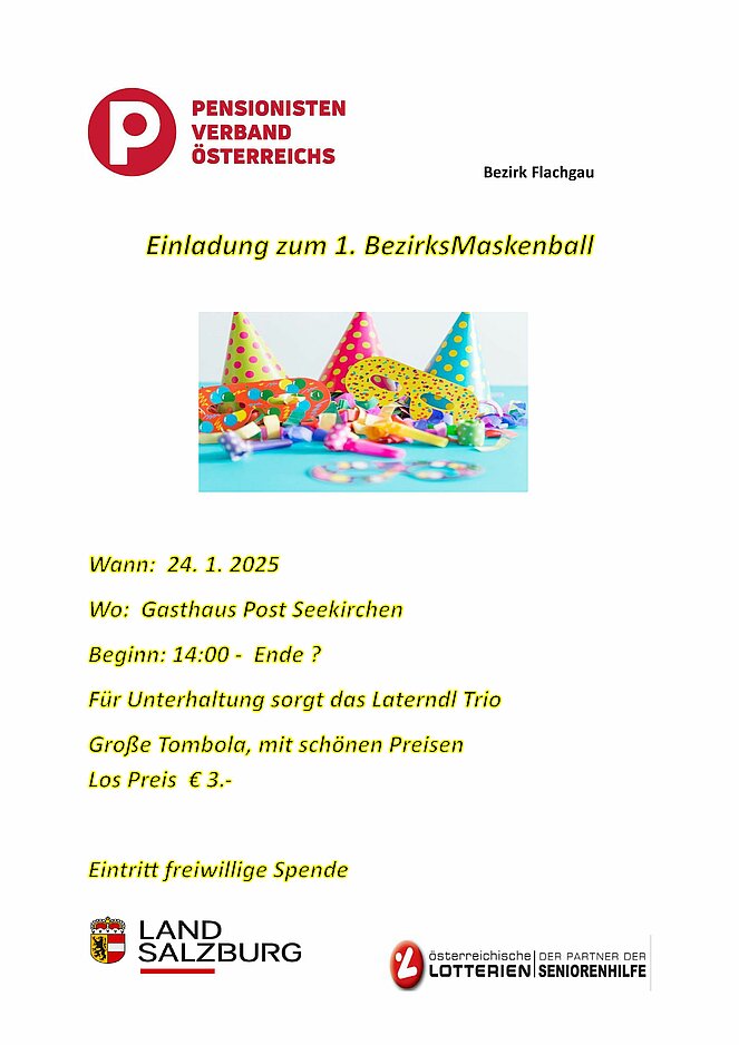 EINLADUNG ZUM 1. BEZIRKSMASKENBALL