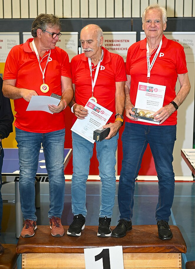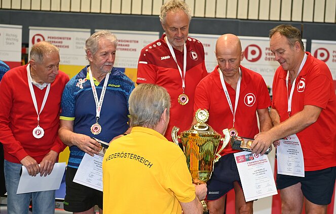 Im Hauptbewerb für Vereinsmannschaften und damit ebenfalls österreichsche Bundesmeister wurde das Team aus Kärnten mit den Spielern, Karl Waldhauser Fritz Grud und Josef Meindl. Den Siegern wurden im Anschluss von Bundesrat Dr. Manfred Mertel, Bundessportreferent Willi Binder, Landessportreferentin aus Wien, Uschi Mortinger und Landessportreferent aus Kärnten, Helmut Müller, die wunderschönen Wanderpokale überreicht.