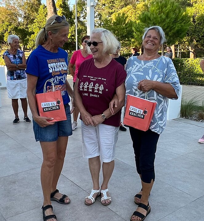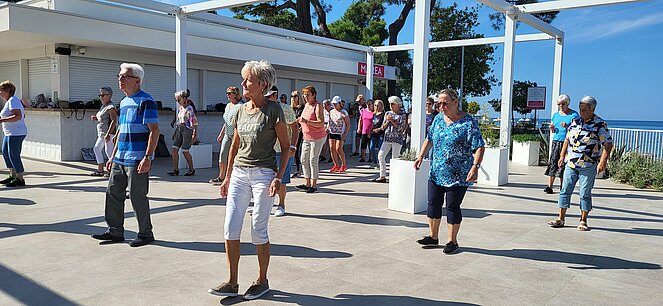 Nach dem Frühstück stand unter fachmännischer Anleitung von drei Tanztrainerinnen 90 Minuten Tanzen auf dem Programm. Kreistanz und Modern Linedance zu bekannter Schlagermusik, Tango, Rumba, Cha-Cha sowie auch zur Volksmusik. Es war für jeden etwas dabei.