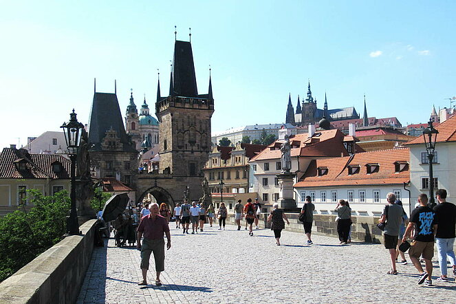 Prag ist die historische Hauptstadt Böhmens und war eine bedeutende königliche und kaiserliche Residenzstadt im Heiligen Römischen Reich, besonders unter den Přemysliden, Luxemburgern und Habsburgern. Um 1230 wurde die seit der Frühgeschichte bewohnte Siedlung zu einer königlichen Stadt erhoben und im 14. Jahrhundert unter der Regentschaft Karls IV. zu einem politisch-kulturellen Zentrum in Europa. Mit der Karls-Universität wurde in Prag 1348 die erste Universität in Mitteleuropa gegründet. Auch das Konservatorium und die Technische Universität gehören zu den ältesten ihrer Art in Europa. Über Jahrhunderte hinweg war Prag eine Stadt, in der sich tschechische, deutsche und jüdische Kultur begegneten.