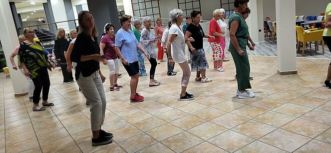 Das Herzstück der Reise war natürlich die Tanzstunden: Jeden Vormittag und Nachmittag verbrachten wir jeweils 90 Minuten auf der Terrasse, begleitet von drei großartigen Trainerinnen. Unter ihrer fachkundigen Anleitung tauchten wir in Kreistänze und vor allem Linedance ein, lernten viel neue Tänze und hatten zugleich unglaublich viel Spaß.