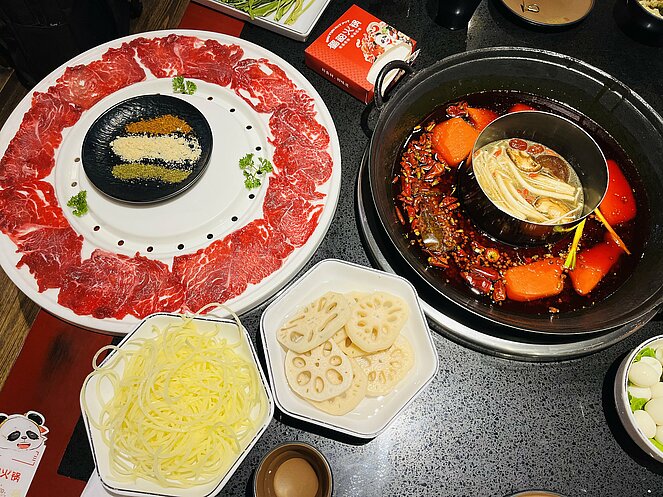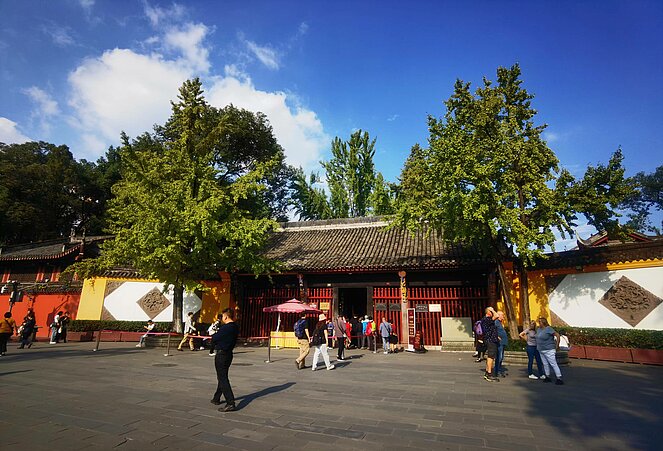 Nach dem Frühstück Check-out und Bustransfer zum Bahnhof. Fahrt mit dem Hochgeschwindigkeitszug C5980 (08:43–12:06, 2. Klasse) zurück nach Chengdu. Am Ziel werden Sie von Ihrem Reiseleiter begrüßt und genießen ein Mittagessen in einem lokalen Restaurant. Am Nachmittag besuchen Sie das Wenshu-Kloster sowie die angrenzende Wenshufang-Kulturstraße, bevor Sie zu Ihrem Hotel transferiert werden. Nach dem Check-in steht Ihnen Freizeit zur Verfügung, bis Sie den Tag beim traditionellen Hotpot-Abendessen in einem lokalen Restaurant ausklingen lassen. Übernachtung in Chengdu im Hotel Holiday Inn Chengdu Oriental Plaza. (oder gleichwertig)