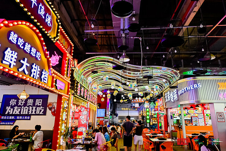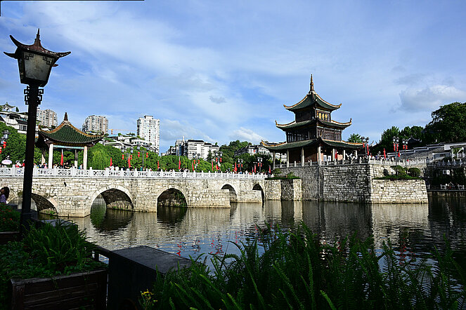 Nach dem Frühstück Check-out und Bustransfer zur Feiyunya (60 km/ca. 1 Stunde). Anschließend Weiterfahrt nach Guiyang (180 km/ca. 2 Stunden) und Mittagessen in einem lokalen Restaurant. In Guiyang besuchen Sie den Jiaxiu-Pavillon, ein 20 Meter hohes Bauwerk aus der Ming-Dynastie, das zuletzt 1909 wieder aufgebaut wurde, sowie den Volksplatz mit der imposanten Mao-Zedong-Statue. Den Abend lassen Sie entspannt auf dem Qingyun FUN-Markt ausklingen. Mittag- und Abendessen in einem lokalen Restaurant. Übernachtung in Guiyang im Hotel Holiday Inn Guiyang City Center (oder gleichwertig)