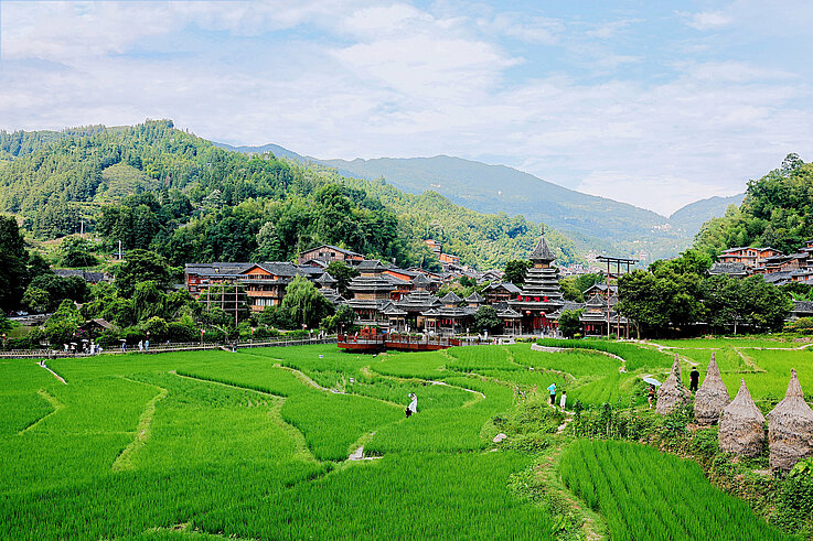 Transfer zum Bahnhof und Fahrt mit dem Hochgeschwindigkeitszug nach Congjiang (G2243, 09:41–14:36, 2. Klasse). Am Bahnhof werden Sie von Ihrem Reiseleiter begrüßt und weiter in das Dorf Zhaoxing Dong gebracht – das größte Dorf der Dong-Minderheit in China und ein faszinierender Ort lebendiger Traditionen. Für die Zugfahrt erhalten Sie eine Lunchbox vom Hotel. Am Abend genießen Sie ein regionaltypisches Abendessen in einem lokalen Restaurant. Übernachtung in Zhaoxing im Hotel LN Dongfang Hotel. (oder gleichwertig)