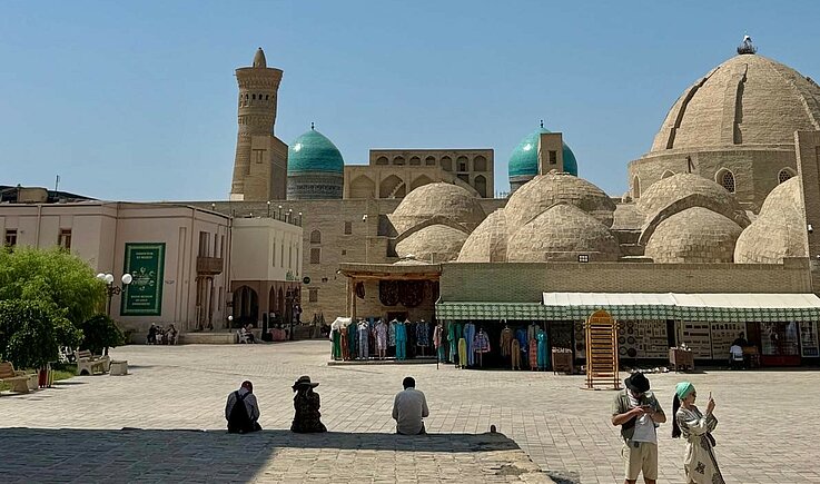 Der Vormittag steht zur freien Verfügung. Sie können die Stadt noch weiter auf eigene Faust entdecken. Gegen Mittag reisen Sie mit dem Bus weiter durch die beeindruckende Wüste Kysylkum. Die Fahrt führt Sie vorbei an Oasen und roten Sanddünen und ist nicht nur landschaftlich reizvoll, sondern auch eine Reise durch die Geschichte. Sie erleben eine vielfältige Landschaft mit endlosen roten Sanddünen, die sich wie Wellen am Horizont erstrecken. Unterwegs werden Sie die Nebenarme des Flusses Amudarja und viele Kanäle passieren, die die entscheidende Wasserquelle für die Landwirtschaft in dieser Region darstellen. Der uralte Handelsweg, auf dem Sie reisen, wurde einst von Karawanen genutzt, die Gewürze, Seide und andere wertvolle Güter zwischen Europa und Asien transportierten. Gegen Abend erreichen Sie Buchara. 2 Nächte im Malika Hotel o.ä. (Landeskategorie: 3 Sterne) in Buchara. Ca. 450 km (F, A)