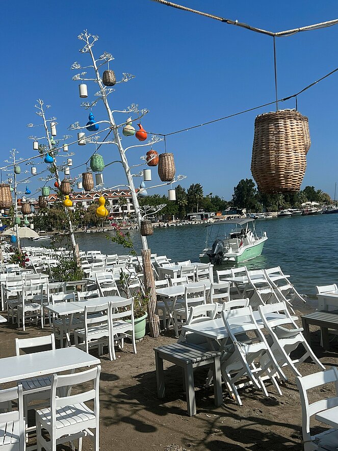 Wenn Sie ein bisschen Glück haben, sehen Sie während dieser „Tuk Tuk Fahrt“ im Fluss auch die Caretta-Caretta Schildkröten. Dieser Strandteil, der den Fluss und das Meer voneinander trennt, ist auch die Brutstätte dieser Meeresschildkröten. Ein bestimmter Abschnitt des Sandstrandes ist abgesperrt, da in der Nacht die Caretta-Caretta ihre Eier in den Sand ablegen. Bevor es zum Mittagessen geht, spazieren Sie bei einer frischen Brise am Meer am flachen Sandstrand entlang. Die Freizeit verbringen Sie im Ort Dalyan zu gestalten, wo sich zahlreiche Cafés und Restaurants sowie diverse Geschäfte befinden (inklusive Mittagessen).