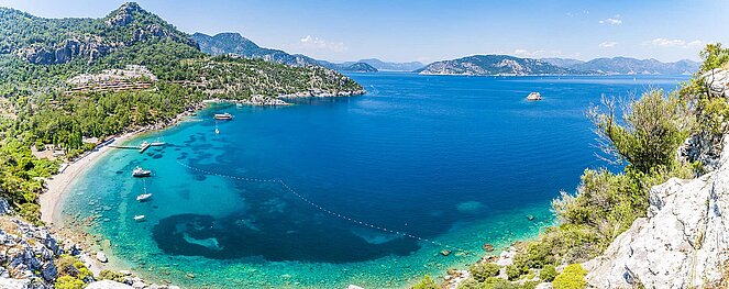Aufgrund der vielen Buchten, die sich entlang des Küstenstreifens erstrecken, sind Marmaris und Umgebung bekannt für die vielen „Blauen Reisen“. Aufgrund der geographisch strategischen Lage war Marmaris in der Antike und in allen Epochen danach, Treffpunkt unterschiedlicher Zivilisationen. Heute verschmilzt das Alte mit der Moderne. Als Handelsstätte und eines der ältesten Siedlungsgebiete der Ägäis - zwischen dem Orient und Okzident – war es weit über die Landesgrenzen bekannt. Diese kontrastreichen Bilder, die Mischung zwischen der Vergangenheit und Gegenwart begleitet einen auf Schritt und Tritt.