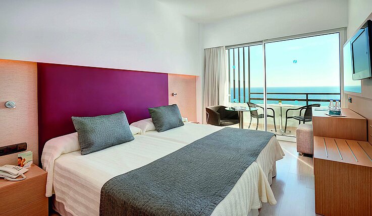 Die geräumigen Zimmer begeistern durch ihr mediterranes, gemütliches Ambiente. Klimaanlage (warm/kalt), Minibar (gegen Gebühr), TV, Telefon, WLAN (inklusive), Safe. Badezimmer mit Dusche, WC, Föhn. Balkon, wahlweise mit seitlichem Meerblick oder Meerblick.