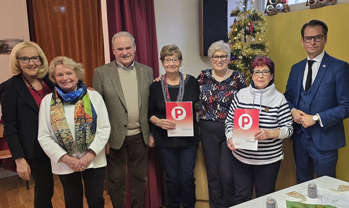 Unser Bild zeigt übrigens unsere 25er- und 40er-Jubilarin im Kreise der Gratulanten und Ehrengäste.