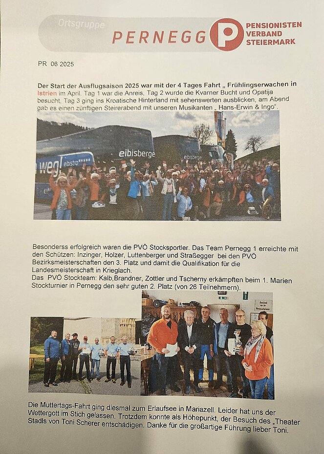 Das Jahr 2025 hat schon einige Höhepunkte im Programm des PVÖ Pernegg geboten.