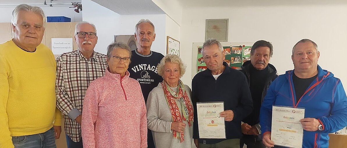 Der Pensionistenverband Pernegg hat einen ganzen Nachmittag im Rahmen eines Preisschnapsen die besten Schnapserinnen und Schnapser ermittelt. Steffi Klösch (3.v.l.) hatte letztendlich das beste Blatt, die weiteren Plätze gingen an Hans Eibisberger (3.v.r.), Helmut Edelsbrunner (2.v.r.) und Hubert Hirtler (4.v.r.).