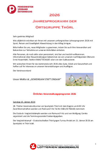 Unser Programm für das Jahr 2026