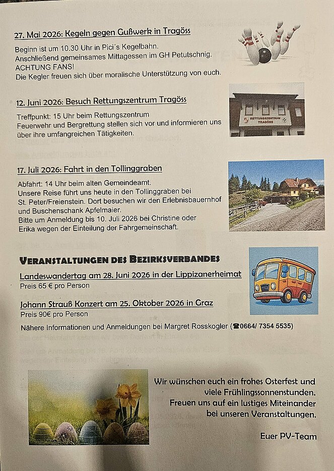 Unsere OG ist sehr aktiv in das Jahr 2025 gestartet. Unsere wöchentlichen Kegelnachmittage haben wieder guten Zuspruch. Am 31. Jänner hatten wir das Eisschießen gegen die OG Turnau. Es war ein sehr fairer, interessanter Bewerb, den unsere Ortsgruppe (jeweils beim letzten Schuss) entschied. Beim gemütlichen Mittagessen hat unsere Ortsvorsitzende Margret Rosskogler der OG Trunau einen Gugelhupf übereicht. Dieser wurde sofort verspeist. Wir freuen uns schon auf’s nächste Jahr in Turnau.