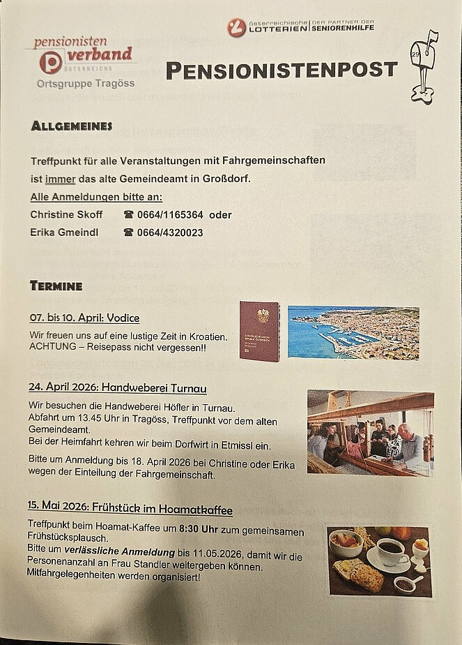 Bis zum Jahresende haben wir noch die Generalversammlung, sowie den Besuch unseres Heimatmuseums.