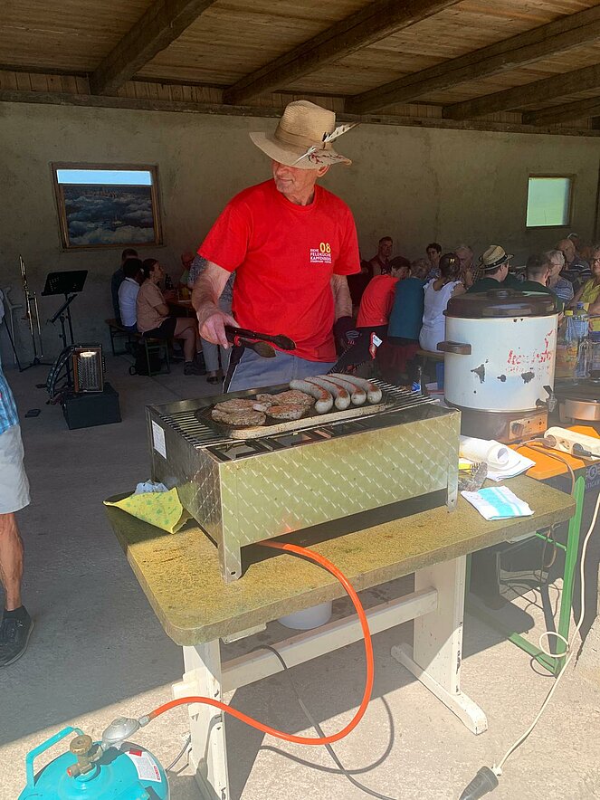 Unser Mitglied Ernst Leister kümmerte sich als Grillmeister um die deftigen Spezialitäten, die Mehlspeisbäckerinnen rund um Erika Feistl sorgten für den süßen Teil des Menüs.