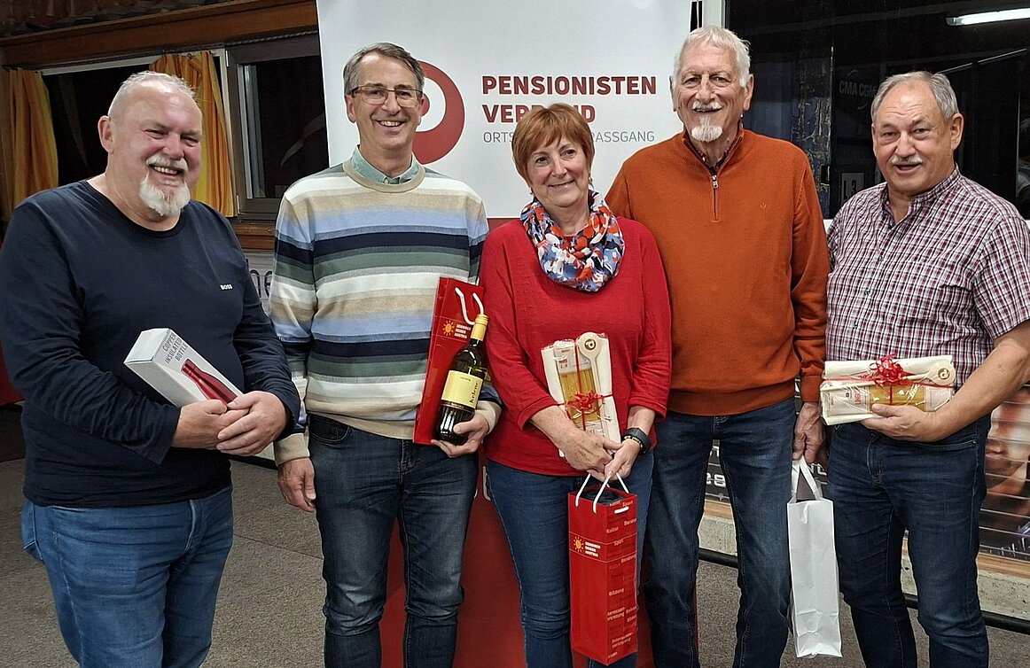 Die ältesten Kegler, Sophie Schwarzl OG Frauental und Friedrich Pratl, OG Deutschlandsberg II, erhielten Blumen bzw. ein gutes Tröpferl. Ebenso wurden die besten Kegler (Berta Krottmaier, OG Hörmsdorf mit 118 Kegel und Franz Koch, OG Deutschlandsberg II mit 123 Kegel) geehrt.