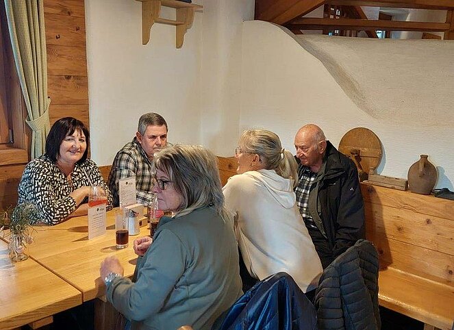 Nach der gemütlichen Fahrt nutzte man noch die Gelegenheit, einen Kaffee oder Getränke im nahegelegenen Restaurant zu genießen, bevor die Heimfahrt angetreten wurde. Gerhard Koch dankte allen Teilnehmenden für den geselligen Halbtagesausflugstag und verwies auf den kommenden Ausflug im August zur Burg Sommeregg nach Seeboden. Dank gilt dem Fahrer Erwin für seine sichere Fahrt, der alle wieder mit beeindruckenden Erinnerungen in Frauental aussteigen lassen konnte.