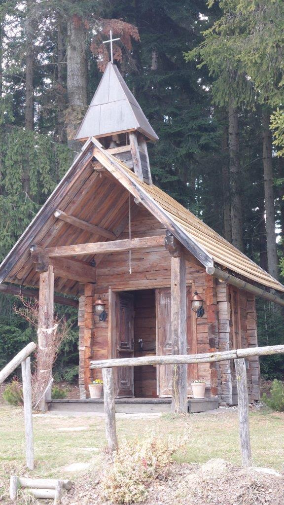 Nachdem der Hunger schön spürbar war, hatte man nach dem Fototermin vor der Holzkapelle (siehe oben) bereits in der urig ausgestatteten Hütte Platz genommen. Das „Almkircherl“ wurde übrigens aus 160 Jahre altem Holz, entnommen von einer kleinen Mühle aus Wenigzell, gezimmert und ist dem Heiligen Urbanus geweiht.