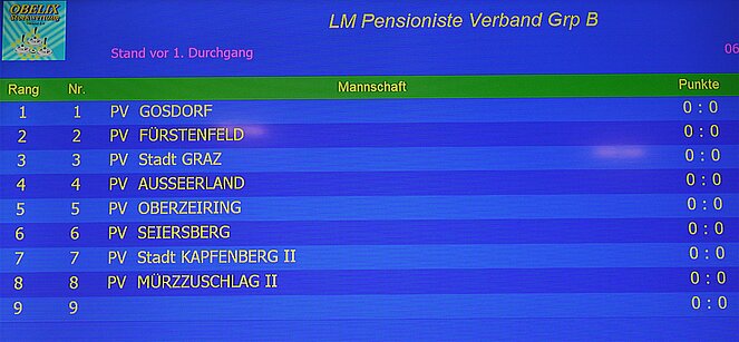 Zuerst wurde in den einzelnen Bezirken gespielt und die besten Spielerinnen und Spieler ermittelt. In unserem Bezirk wurde am Donnerstag, 27.0.2025 im Weinhof Krachler die Bezirksmeisterschaft ausgetragen. Sieger wurde Helmut KÖNIG, OG Fürstenfeld, vor Franz AUER, OG Ilz. Die beiden wurden für die Landesmeisterschaft nominiert.