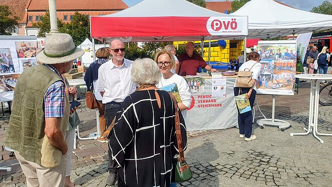 Auch heuer nahmen der Pensionistenverband Steiermark mit Geschäftsführerin Manuela Kunst und die beiden OG Fürstenfeld und Ilz-Großwilfersdorf am „Tag der Freiwilligen“ in Fürstenfeld, Hauptplatz teil. Das Interesse war sehr groß, besonders das Reiseangebot von Seniorenreisen mit Frühjahrs- und Herbsttreffen war sehr gefragt, so dass Manfred Hafner und sein Team alle Hände voll zu tun hatten, die vielen Fragen zu beantworten. Unsere Reisen sind ein „Rundum-sorglos-Paket“, speziell für Reisende, die verwöhnt werden möchten!