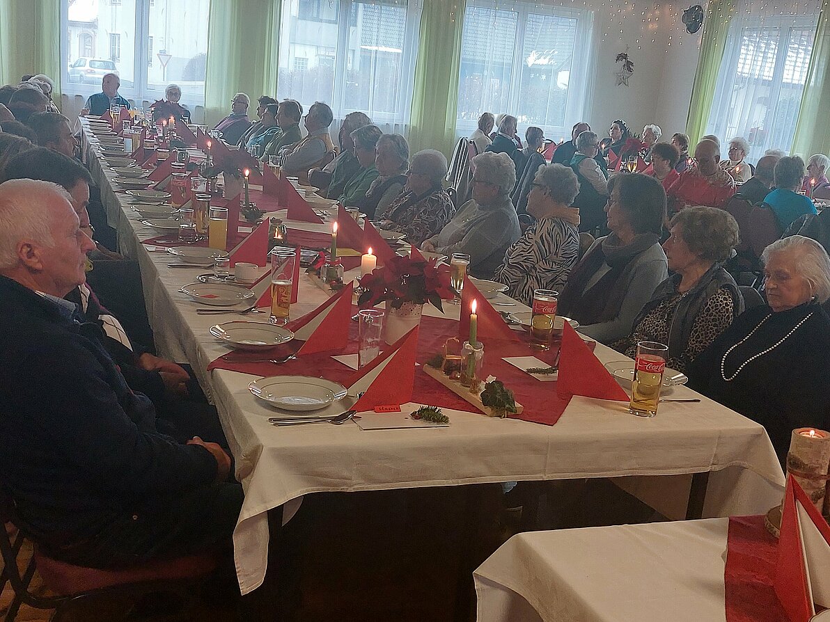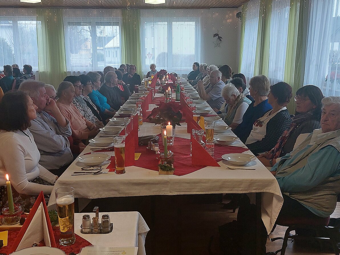 Wie alle Jahre endet unser aktives Jahresprogramm mit einer schönen Weihnachtsfeier. Diesmal konnte OV Alois Janser neben den Ehrengästen Pfarrer Mag. Ioan Bilc und Bgm . Franz Zehner, die herzliche Grußworte aussprachen, fast 80 Mitglieder im GH Ritter in Gr.Wilfersdorf begrüßen. Zuerst gab OV Janser einen Rückblick auf die Aktivitäten im Jahr 2023 und erzählte weiters über die geplanten Veranstaltungen 2024. Danach folgte die Feier, die unter dem Motto “Weihnachten -wie es früher war“ stand. Der Saal war mit Tannengrün, Strohsternen und Kerzen weihnachtlich geschmückt und die Texte, gelesen von Margit Zechmeister, Hermi Mönig und Elfi Reisenhofer , waren dem Motto angepasst und erinnerten an früher. Die Mitglieder fühlten sich in dem heimelig gestalteten Raum sehr wohl und unterhielten sich nach dem Essen bei selbstgebackenen Keksen bis in den Nachmittag. Vielen Dank an die Helfer, dien die Feier gestaltet und beim Aufbau mitgeholfen haben und auch den Köchinnen der vielen feinen Weihnachtsnaschereien.
