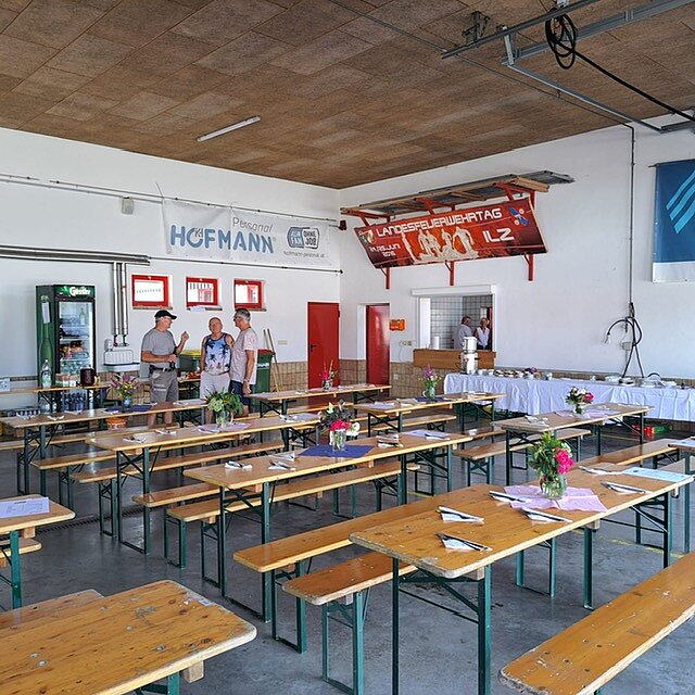 Die Gäste saßen vor der Georgshalle in Hainersdorf im Schatten von großen Schirmen, lachten,