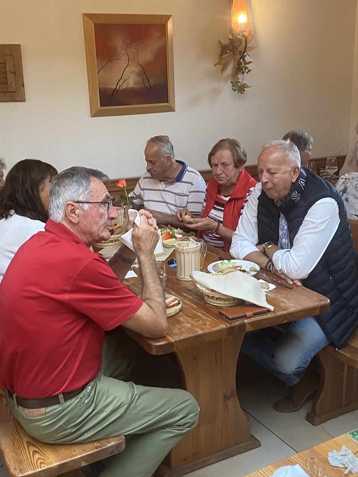Dann war es aber wirklich Zeit zum Essen. Der Verein lud die Mitglieder zu einem feinen Essen mit wahlweise zu Schnitzel oder Schweinsbraten ein, als Nachtisch wurde noch eine leckere Erdbeerschnitte serviert. Auch das eine oder andere Achterl Wein wurde genossen. Wir danken dem Weinhof Kohl für die rasche und liebe Bewirtung.