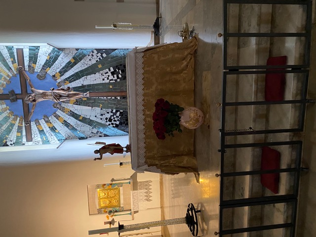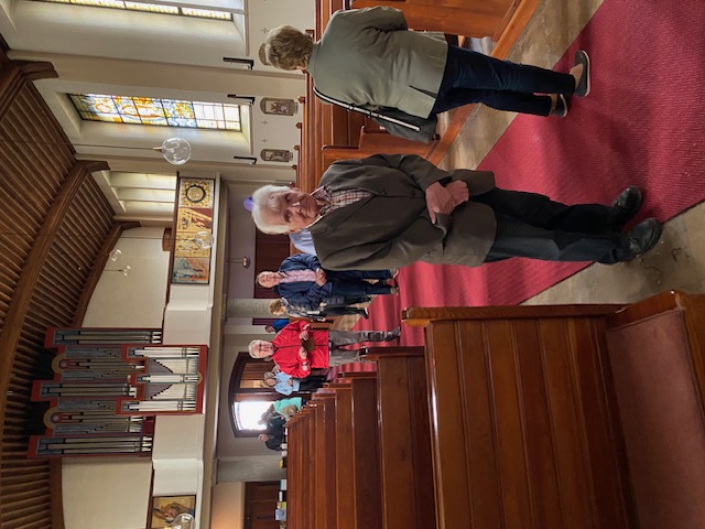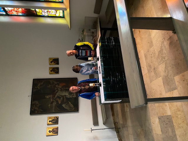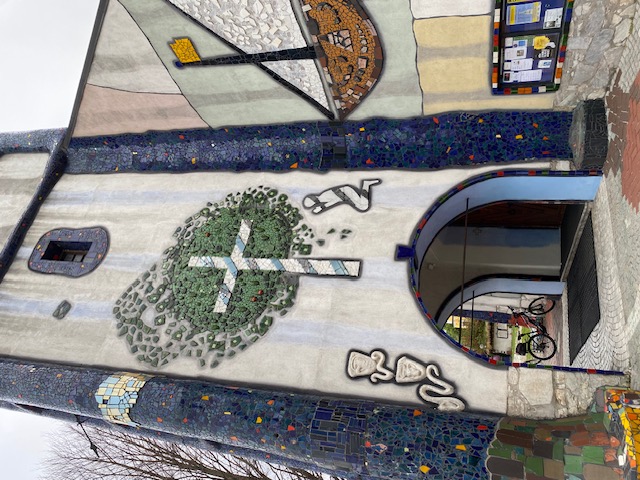 Wir hatten Glück, denn der ortsansässige Pfarrer kam gerade vorbei und erzählte uns die Geschichte dieser Kirche. Alle lauschten seinem interessanten Vortrag. Die Kirche wurde um 1950 vom Architekten Lebwohl erbaut und von Friedensreich Hundertwasser 1987/88 umgestaltet und berühmt gemacht.