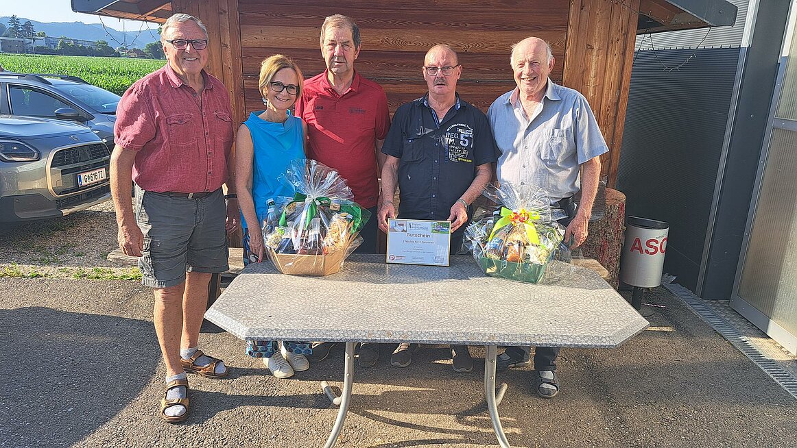 Die Landesgeschäftsführerin Manuela Kunst und der Bezirksvorsitzende Erwin Trummer gratuliereten den Siegern und wünschten ihnen für das Landesschnapsfinale des PVÖ Steiermark 2025 am 8.11. ebenfalls in der ESV Alte Maut - Halle viel Erfolg.