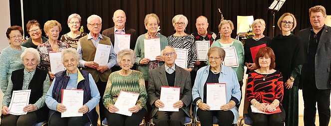 Unsere Weihnachtsfeier fand am 18. Dezember 2024 im VAZ Fernitz statt. Mehr als 114 Mitglieder sind der Einladung gefolgt. Weihnachts- und Neujahrswünsche übermittelten Bgm. Robert Tulnik, Pfarrer Mag. Josef Windisch. Unter den Ehrengästen konnten wir auch Diakon Hans Hofer und Franz Wiesler, Zweigstellenleiter der Raiffeisenbank Hausmannstätten in Fernitz begrüßen. Franz Wiesler überreichte uns einen Scheck über € 200,- für eine unserer nächsten Aktivitäten. Der Kirchenwirt, Ewald Lampl und sein Team haben uns kulinarisch sehr verwöhnt. Nach dem Essen wurden langjährige Mitglieder mit einer Urkunde geehrt, besonders Erna Krenn für 30 Jahre!