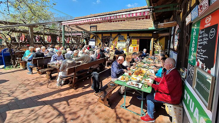 Am 26. Mai besuchten wir die Biohofkäserei Deutschmann in Oberbergla (Frauental). Nach einem Rundgang durch die Produktions- und Lagerstätten der Käserei, konnten wir nach einem kleinen Filmvortrag verschiedene Käsesorten verkosten. Die Milch für den Käse stammt von den Kühen der eigenen Landwirtschaft. Wären wir eine halbe Stunde früher gekommen, hätten wir die Geburt eines Kalbes miterleben können. Nach der Verkostung wurde fleißig Käse eingekauft. Anschließend ging es zur Buschenschank Wechtitsch-Zuser in Großklein. Mit einer guten Jause und Sonnenschein im Wein ließen wir den Nachmittag ausklingen.