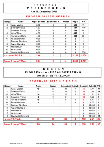Die Ergebnislisten der Damen und Herren per Jahresabschluss 2025 zum Herunterladen: