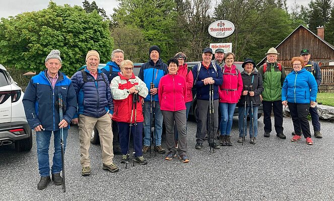 15 unerschrockene Wanderer der Ortsgruppe Semriach haben sich trotz Schlechtwetters beim Höchwirt in Gratkorn – Freßnitz zu einer Wanderung getroffen.