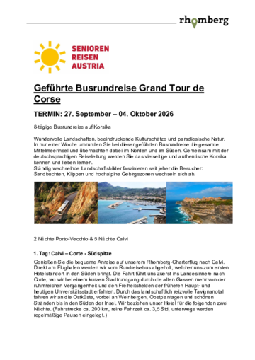 Grand Tour de Corse mit Ihrem PVÖ-Reisebegleiter Kurt Sturb