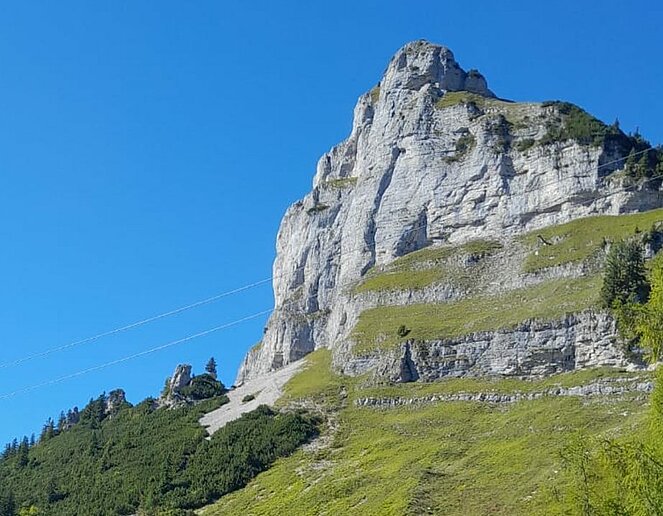 Einer unserer Ausflüge führte uns an den Fuß des Losers, den Hausberg des Ausseerlandes, der bei traumhaftem Wetter auf unsere Teilnehmenden herabblickte (Foto).