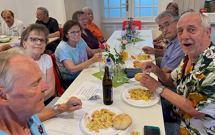 Unsere Mitglieder freuten sich schon sehr darauf - es war ja bekannt, dass Helga und Franz für uns ihre berühmte leckere Eierspeise mit Schinken und viel Gemüse zubereiten würden .