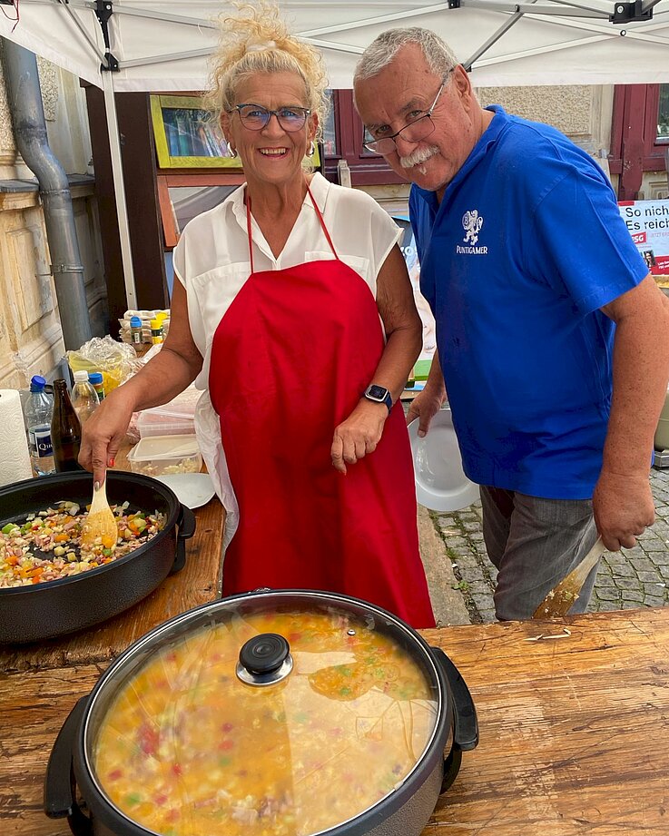 Es wurden 2 (wirklich) große Pfannen verwendet, damit unsere Vereinsmitglieder nicht zu lange auf das Essen warten mussten.