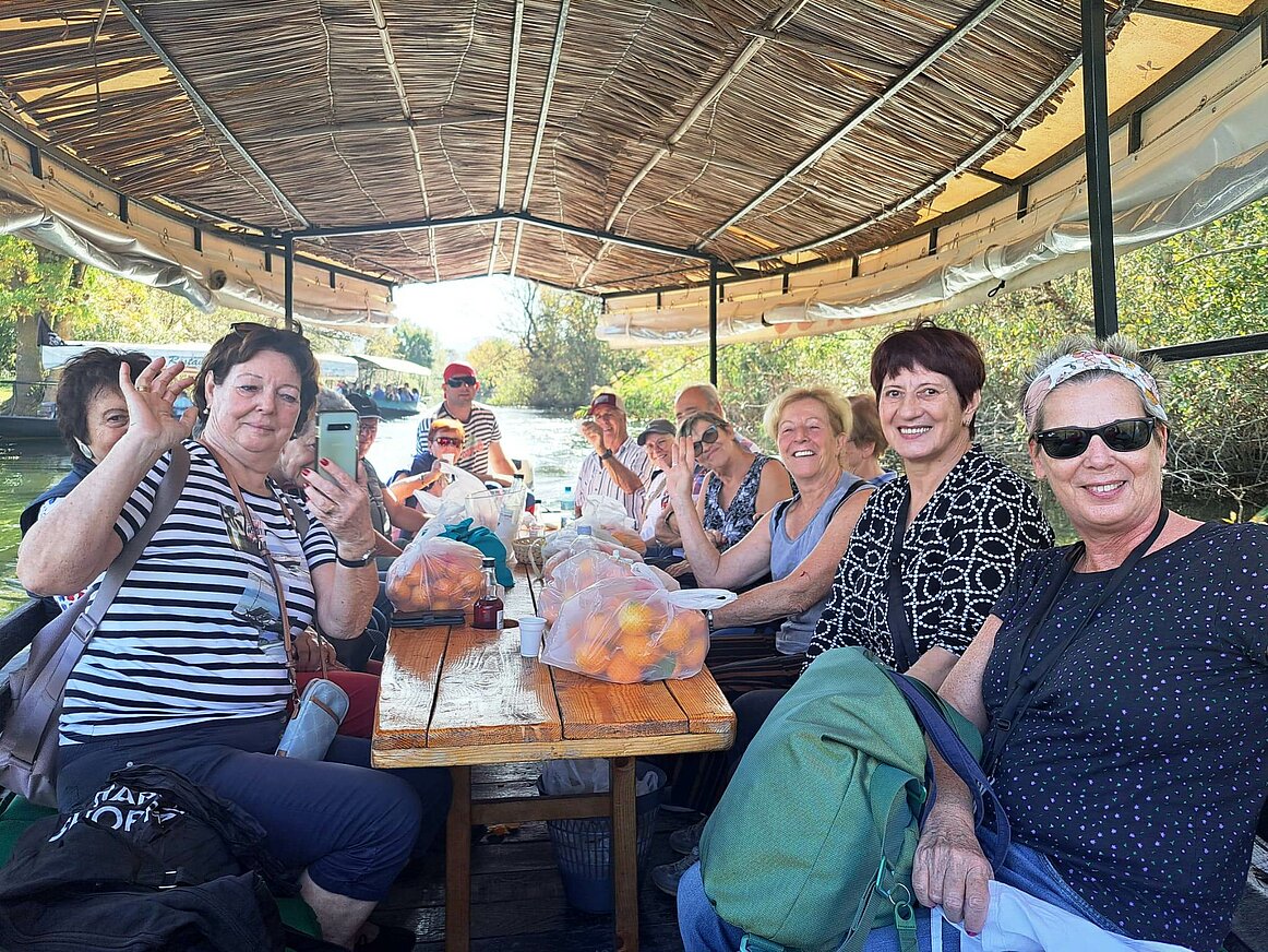 Der nächste Tag war der Höhepunkt der Reise: Der Bus führte uns entlang der traumhaften Küstenstraße ins Neretva Tal. Hier wurden wir schon erwartet und mit kleinen Booten ging es durch die engen und romantischen Kanäle des Neretva Flusses zur Mandarinenernte mit anschließendem Mittagessen und musikalischer Unterehaltung.