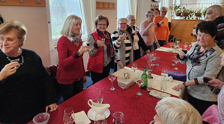 Im Gasthaus angekommen, wurden wir mit einem g’schmackigen Grammelbrot und einem Begrüßungsschnaps empfangen. Danach erfolgte das lang ersehnte Mittagessen: ein köstlicher Ganslbraten wurde serviert, der – wie jedes Jahr – ausgezeichnet schmeckte.
