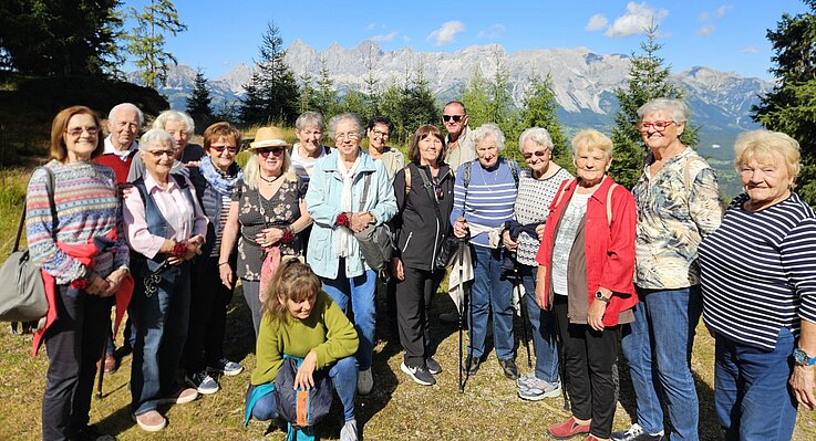 Vor Ort genossen wir ein köstliches Mittagessen. Anschließend machten wir einen Spaziergang: Auf dem Panoramaweg bot sich uns eine beeindruckende Aussicht auf den Dachstein und die Bischofsmütze. Wieder zurück an der Hütte, ließen wir den Nachmittag bei Kaffee und Kuchen gemütlich ausklingen.