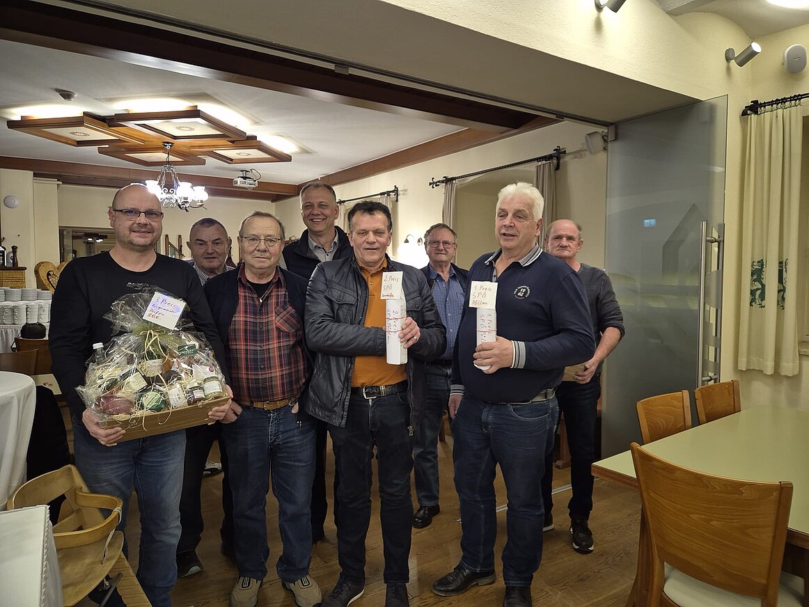 Somit konnte Vorsitzender Johann Berghofer den ersten Preis, einen prall gefüllten Korb mit Spezialitäten aus dem Pöllauer Tal entgegennehmen.