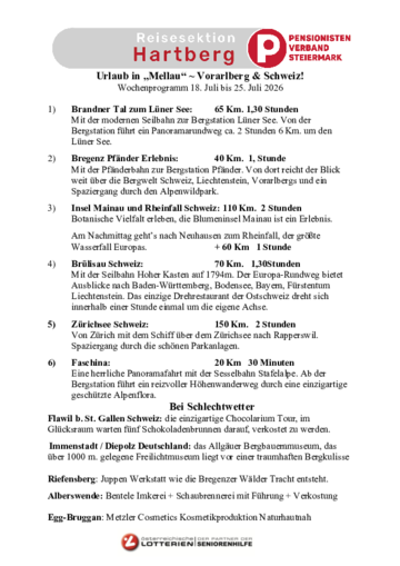 Die 2026er-Wanderreise führt uns im Juli “ins Ländle” nach Vorarlberg und über die Grenze in die Schweiz. Wir freuen uns schon darauf!