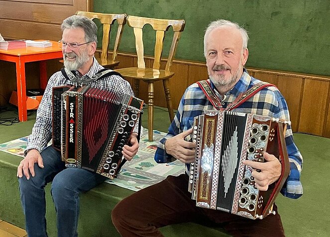 Auch für gute Unterhaltung waren unsere harmonikaspielenden Mitglieder ins Dorfstüberl mitgekommen.