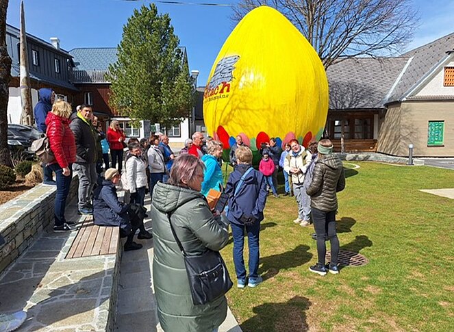 Die Bürgermeisterin aus dem Osterhasendorf Fischbach war persönlich gekommen, um die Gruppe vom Pensionistenverband Murau zu begrüßen. Umringt von den verschiedenen „Hasengruppe“ flanierte die Ortsvorsitzende Sonja Pilgram mit der gut gelaunten Pensionistenschar durch das Osterhasendorf. „Es ist einfach wunderschön hier in Fischbach und vor allem auch die Vielfalt der Osterhasen. Egal ob es die verschiedenen Berufsgruppen sind, die Hasenfamilien, die Feuerwehr und ich bedanke mich herzlich für den netten Empfang“ meinte Pilgram mit den Grußworten an die Bürgermeisterin Sylvia Karel. Kulinarisches wurde beim Fischbacher Kirchenwirt eingenommen und bei Kuchen und Kaffee wurde der Tagesausklang im Osterhasendorf Fischbacher in geselliger Runde gefeiert. WS
