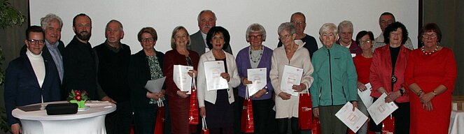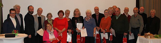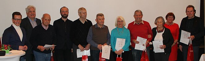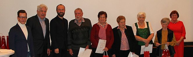 Insgesamt 116 Mitglieder unserer OG wurden für 10, 15, 20, 25, 30 und 35-jährige Mitgliedschaft geehrt. Theresia Wurzer wurde für 40-jährige und Maria Jamnig für 45-jährige Zugehörigkeit zum PV besonders hervorgehoben. Allen Geehrten wurden von den Ehrengästen, der scheidenden Ortsvorsitzenden Antonia Schneider und der neugewählten Ortsvorsitzenden Melitta Esser die Ehrenurkunden überreicht. Die Versammlung klang mit einem Imbiss, musikalischer Unterhaltung durch Benedikt Roth auf seiner steirischen Harmonika und einem gemütlichen Beisammensein aus.
