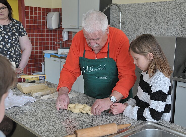 Der gelernte Bäcker Josef Hafner zeigte den Kindern, wie man zwei-, drei- und vierfache Striezel flechtet.